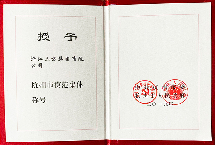 2019年4月29日,我公司被杭州市委、我公司被杭州市人民政府授予“杭州市模范集体”荣誉称号这是继2018年公司荣获“杭州市五一劳动奖状”后的又一殊荣。